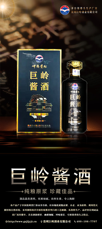 貴州巨嶺酒業(yè)有限公司,座落于聞名世界的古鎮(zhèn),國酒之鄉(xiāng)“茅臺鎮(zhèn)”。與“國酒茅臺”共享得天獨厚的氣候、土壤、水源、以及微生物群等自然資源;《巨嶺酒業(yè)》老作坊前身“巨嶺燒坊”,經(jīng)過多年的傳承,秉承先輩們代代相傳的古法釀造工藝,歷經(jīng)幾代人的延續(xù)和釀酒發(fā)展,奠定了《巨嶺酒業(yè)》發(fā)展的堅實基礎(chǔ)。 作為貴州茅臺鎮(zhèn)本土規(guī)模企業(yè),《巨嶺酒業(yè)》擁有傳統(tǒng)發(fā)酵窖池200余口,年產(chǎn)優(yōu)質(zhì)醬香白酒近2600多噸,儲酒能力12000多噸;并配有3條現(xiàn)代化包裝生產(chǎn)線;公司現(xiàn)有職工300多名,有釀酒師15人,技術(shù)人員22人,本科以上學(xué)歷管理人員12人,大專學(xué)歷工作人員78人,是茅臺古鎮(zhèn)醬酒傳承的白酒知名企業(yè)。 《巨嶺酒業(yè)》勵精圖治與精益求精的發(fā)展理念,已成長為行業(yè)認(rèn)可、社會公認(rèn)的“規(guī)模釀酒企業(yè)”,酒業(yè)協(xié)會副會長單位”和“愛心企業(yè)”。 公司現(xiàn)在擁有:《巨嶺醬酒》,《嶺臺》,《玉嶺燒坊》,《酒緣》《情滿壺》等上百個品牌產(chǎn)品,公司注重品牌發(fā)展,以《巨嶺醬酒》為品牌核心,以個性化定制和尊貴封藏為營銷模式,制定出“一核兩柱”的銷售模式。《巨嶺醬酒》作為品牌主體,做擴(kuò)展市場的排頭先鋒,全國布局,點線結(jié)合,網(wǎng)狀布局,包括《巨嶺》系列產(chǎn)品.... |